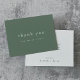 Den här unika grönten minimalistisk, modernt tack du kort från Hannah Collection är perfekt för ett minimalistiskt bröllop eller när du vill skicka ett uppskattningsbudskap. Den mörk grönten av skogar har en modern oborderad typografi med ett unikt minimalistiskt stil. Anpassa baksidan av tackkortet med namn och ett tackmeddelande. Du kan också lämna tackmeddelandemallsavsnittet tomt om du vill att skrivan ska förses med en personlig på varje kort när de har anlänt. Korten kan användas för bröllop, babydusch, möhippa eller vad som helst.