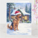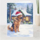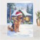 Hanoverian Scenthound Snowy Forest Cabin Santa Hat Kort