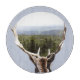 En digital målning av en bucks huvud med sikte på träd fylld backe som hålls mellan hans tändare. Den här bilden har ingen bakgrund. Du kan välja en annan bakgrund färg än den markerade.
