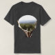 En digital målning av ett buckhuvud med tanke på ett bergslandskap mellan hans skjortor.