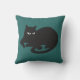 Dramatiskt grafiskt av en svart katt med vitpiercingögon i silhouette på en grönt kudder.