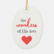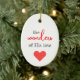 Vit och röd oval prydnad med ord "Hans Kärlek underverk". Ett meningsfullt och festligt tillägg till Julgran.