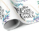 Hans Kärlek Misslyckas aldrig "Wrapping Papper", den här kristna designen har en vacker andedräkt av blått blommigt och texten "Hans Kärlek Misslyckas aldrig".
