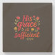 Designen visar den uppmuntrande frasen "Hans nåd är tillräcklig", elegant återgiven i flödande, kursiv text. Runt texten flätas ömtåliga vildblommor och botaniska motiv samman och symboliserar skönheten och överflödet av Guds nåd. De livfulla färgerna röda, orange och gula appliceras med färgpennor och skapar en varm och inbjudande atmosfär som förkroppsligar hopp och tro. Verket fungerar som en hjärtlig påminnelse om Guds nåds tillräcklighet i våra liv och inspirerar betraktaren att omfamna tro och motståndskraft.