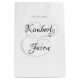 Hans och hennes namn i vacker svart och grå skriftskrift för en elegant design på vit bakgrund med svart datum.