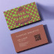Gör ett bestående intryck med ett affärskort av grönt och brunt schaktbord designat för handgjorda klädesmärken. Med en QR-kod och fet färg sammanför detta kort stil, äkthet och den unika beröringen hos ett hantverksföretag med kärlek.
