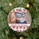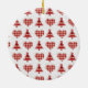 Hantverket kontrollerade röda och rosa julgranar och hjärtamönster på bebis den första julgranprydnaden för att personifiera med din foto och text.