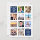 Det här platta kortet är designat för upp till 12 foton av din familj, dina husdjur eller äventyr från det senaste året. Perfekt för de år då så mycket har hänt kan du inte bara markera en händelse! Alternativt kan du välja många bilder från ett tillfälle. Exemplet innehåller 10 foton och 2 fasta blå fyrkanter. Flytta färgadens fyrkanter till valfri plats eller ta bort om du vill att alla 12 blanksteg ska fyllas med foton. All text kan redigeras helt och hållet, bara ändras till din egen ordalydelse med hjälp av de enkla, medföljande mallarna. Baksidan skrivs ut med en modern, skissad punkt mönster i blått och vitt.