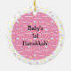 Hanukkah "Bubeleh"/Rosa hearts-Circle Ornament. (2 sided) Personalisera genom att stryka "Baby 1st Hanukkah!" på framsidan och baksidan av prydnadsföremål. Skriv sedan in ditt eget ord i ditt favoritteckensnitt färg, storlekt och stil. Tack för att du stannade och shoppade förbi. Mycket uppskattat! Lycklig Chanukah/Hanukkah! Ge träd mycket mer helgdag med en anpassningsbar keramisk prydnadsprodukt. Lägg till familjefoton, bilder eller personliga meddelanden på båda sidor av julgransprydnaden. En kniv av guld-tråd gör det enkelt att hänga upp denna fantastiska keepsaké. Mått: Diameter: 2,87 tum Tjocklek: 0,156 tum Vikt: 1,4 oz. Utskrift av vit porslin Fullt-färg, utfallande fullt på båda sidor
