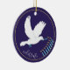 Hanukkah "Dove Ljus Menorah/Guld, Blue"/Circle Ornament. (2 sidor) Om du vill anpassa dig tar du bara bort texten på utsmyckningens baksida och framsida och ersätter med din egen text med ditt favoritteckensnitt stil, storleka och färg. Bakgrunden på ornamentens baksida och framsida kan ändras genom att du väljer färgrutorna i färg. Tack för att du stannade och shoppade förbi. Mycket uppskattat! Lycklig Chanukah/Hanukkah! Ge träd mycket mer helgdag med en anpassningsbar keramisk prydnadsprodukt. Lägg till familjefotografier, bilder och personligt meddelande på båda sidor om den här prydnaden. En kniv av guld-tråd gör det enkelt att hänga upp denna fantastiska keepsaké. Mått: Diameter: 2,87 tum Tjocklek: 0,156 tum Vikt: 1,4 oz. Utskrift av vit porslin Fullt-färg, utfallande fullt på båda sidor