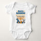 This baby bodysuit is bringing the Hanukkah hype with three adorable party animals and a menorah that’s lit in every sense of the word. A bunny with a donut, a bunny with a dreidel, and a cat who’s clearly the chill one of the group—this outfit is ready for eight nights of snuggles, squeals, and snack-fueled celebrations.