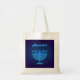 Lycklig Hanukkah Festival Menorah Logotyp dekorativ blå ornament, David Star, Tote Bag Design. Hanukkah Judiska Trendiget, blå neon ljus judisk Helgdag för tillbehör, väskor och plånböcker, citat & Shopping bag, Tote bags, Hanukkah-skylt. Israel Jerusalem 2023 Firande av 75:e-årsdagen