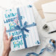 "Skrattar, skratt och ljus." Denna pappra förpackning har en lekfull, vismisk, handgjord typografi mönster i turkos, blått och teal tillsammans med blek, akvblått hand plockade linjer på vit bakgrund. Känn julhelgens värme och glädje varje gång du användor den här roligten, så att det blir en enkel, modern Hanukkah som slår pappert. Matchningskort, klistermärken, kuddar, heminredning och annat finns också att tillgå. Gör en underbar present till något ännu bättre! Du kan enkelt anpassa den här speciella helgdag papper. Var snäll och meddela mig med eventuella frågor eller förfrågningar.