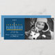 Skicka Hanukkah hälsning till familj och vänner med detta moderna anpassade. I teckningen finns ord "Lycklig Hanukkah" designad för att likna en menorah med ljus som lyser med ljus - varje brev representerar ett av ljusen och ord "Lycklig" blir mittljus. Anpassa den genom att lägga till egna hälsning, år och namn med hjälp av de medföljande textmallarna. Slutför designen genom att byta ut exempelfotot mot ett eget familjefoto. Den omvända sidan är en koordinationsblå sida med en textmall för ditt eget Julhälsningar- eller kort-meddelande. Om du inte vill ha någon text lämnar du bara tom.