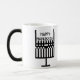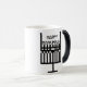 Hanukkah mugg med en menoradesign som inspireras av arbetet av den Glasgow konstnären Charles Rennie Mackintosh. Muggstarter svärtar och bleknar till vit med svart återstå för design.
