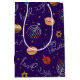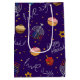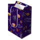 En färgfull Lila Hanukkah Medium Storlek Gift Bag Designad med typografi, Menorah, Dreidel och David Star