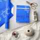 Denna papper har en Hanukkah-design av dreidel, David-stjärnan och Lycklig Hanukkah på blå bakgrund. Underbar för säsongen.
