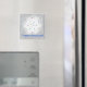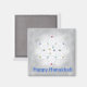 En magnet med min design av stjärnan David och snöflingor på grått och vit bakgrund, plus anpassade som säger "Lycklig Hanukkah".