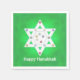 Napkins med min design för Hanukkah av David Star med lite färgstark snöflingor på en grönt och vit frostig bakgrund med anpassade text.