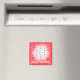 En magnet med min design av David-stjärnan och lite färglöst snöflingor på en röd och vit bakgrund, plus anpassade som säger "Lycklig Hanukkah".