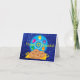 Vacker Anpassningsbar Hanukkah Kort med Hanukkahfat med Dreidels Blå Falskt Glitter Design