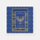 Happy Hanukkah Party Jewish Holiday decorative Menorah. Hanukkiah Symbol. Jewish Holiday Chanukahs Decoration with traditional Chanukah decorative symbols - Navy Blue color, colorful dreidels Chanukah wooden toys (spinning top), star of David and neon blue glowing lights illustration. Hanukkah Festival of lights Event Decoration. Jerusalem, Israel. Crafts & Party Supplies > Party Supplies > Tableware > Paper & Party Napkins Judaica Modern Design. For a festive Hanukkah 2025 table setting.