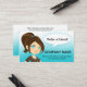 Hänvisa eller berätta för en vän affärskort med en tecknad dam som rekommenderar ditt företag. Underbar för alla företag med huvudsakligen kvinnliga kunder.