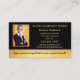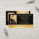 Affärskort med ditt eget anpassningsbar på framsidan och ett på baksidan. Konstruktionen är en guld--elegant med svart. Texten är en mall för ett hänvisningsobjekt och kan anpassas till använda som ett vanligt affärskort. Beroende på ditt företags behov kan du erbjuda en rabatt på 20 % eller ett kostnadsfritt urval eller annat som fungerar för dig.
