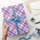 Häpnadsväckande rutigt mönster i blått rött lila presentpapper