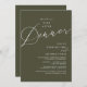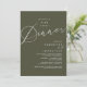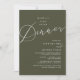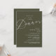 Mark the beginning of your forever with elegance using our romantic contemporary olive green theme, wedding elopement celebration invitation card, "Happily Ever After Dinner". Perfect for couples extending their joyous occasion, this invitation exudes sophistication with a hint of playfulness, setting the stage for a memorable event. Adorned with a timeless modern script design theme, it adds a touch of refined charm to your festivities. Crafted by TeeshaDerrick, this invitation promises to beautifully capture your love story.