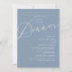 Mark the beginning of your forever with elegance using our romantic contemporary dusty blue theme, wedding elopement celebration invitation card, "Happily Ever After Dinner". Perfect for couples extending their joyous occasion, this invitation exudes sophistication with a hint of playfulness, setting the stage for a memorable event. Adorned with a timeless modern script design theme, it adds a touch of refined charm to your festivities. Crafted by TeeshaDerrick, this invitation promises to beautifully capture your love story.