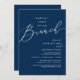 Mark the beginning of your forever with elegance using our romantic contemporary navy blue theme, wedding elopement celebration invitation card, "Happily Ever After Brunch". Perfect for couples extending their joyous occasion, this invitation exudes sophistication with a hint of playfulness, setting the stage for a memorable event. Adorned with a timeless modern script design theme, it adds a touch of refined charm to your festivities. Crafted by TeeshaDerrick, this invitation promises to beautifully capture your love story.