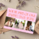Modern and playful wedding thank you photo card featuring a text that says "You're part of our happily ever after" with 3 of your pictures. You can add another photo on the back with a message. Orange pink.