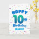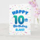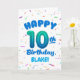 Celebrate their 10th birthday with a bright, cheerful, and personalizable birthday card! This custom name birthday card features a bold number ten balloon and colorful confetti.