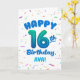 Celebrate their Sweet 16th birthday with a bright, cheerful, and personalizable birthday card! This custom name birthday card features a bold number sixteen balloon and colorful confetti.