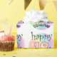 roze gelukkige 18de verjaardag. Leuk om te geven als cadeau aan iemand die achttien jaar is geworden. Vrolijk design met regenboog kleuren.