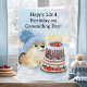 This hand-painted watercolor and pen illustration features a cheerful groundhog peeking out of his den to celebrate a special 22nd birthday, reaching for a chocolate and vanilla cake topped with strawberries, blueberries, and boysenberries. A charming Groundhog Day birthday design that adds seasonal fun to an age-specific celebration.
