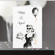 A birthday card for a woman, friend or sister. Happy 28 again, funny aging birthday joke. Inside is some more sarcastic birthday humor. Black and white illustration a woman holding a cake and balloon.