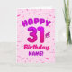 Celebrate their 31st birthday with a bright, cheerful, and personalizable birthday card! This custom name birthday card features a bold number twenty balloon and colorful confetti.