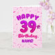 Celebrate their 39th birthday with a bright, cheerful, and personalizable birthday card! This custom name birthday card features a bold number thirty nine balloon and colorful confetti.