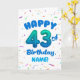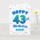 Celebrate their 43rd birthday with a bright, cheerful, and personalizable birthday card! This custom name birthday card features a bold number forty three balloon and colorful confetti.