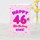 Celebrate their 46th birthday with a bright, cheerful, and personalizable birthday card! This custom name birthday card features a bold number forty six balloon and colorful confetti.