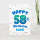 Happy 58th Birthday Card with Custom Name Kort