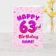 Celebrate their 63rd birthday with a bright, cheerful, and personalizable birthday card! This custom name birthday card features a bold number sixty-three balloon and colorful confetti.