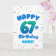 Celebrate their 67th birthday with a bright, cheerful, and personalizable birthday card! This custom name birthday card features a bold number sixty-seven balloon and colorful confetti.