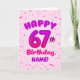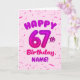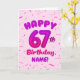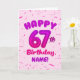 Celebrate their 67th birthday with a bright, cheerful, and personalizable birthday card! This custom name birthday card features a bold number sixty-seven balloon and colorful confetti.