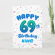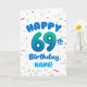Celebrate their 69th birthday with a bright, cheerful, and personalizable birthday card! This custom name birthday card features a bold number sixty-nine balloon and colorful confetti.