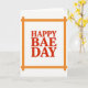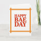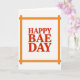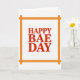 This funny greeting card keeps things simple and focuses on one big message in the center: “HAPPY BAE DAY.” The words are in a red-orange color and set in a slightly narrow serif style, so they feel strong and easy to read. Around the text is an orange border that doesn’t fully connect at the corners, leaving small gaps that make the frame feel open and modern. The background is plain white, which makes the warm orange and red-orange colors stand out clearly. There aren’t any characters or extra objects—just the message and the graphic frame—so the card feels direct and affectionate. The text sits right in the middle, with the border spaced evenly around it, like it’s spotlighting the greeting. Overall, it’s a friendly, romantic note that fits a partner or someone you care about ❤️💌🍫.