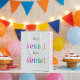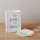 This adorable customizable birthday gift bag showcases vibrant, colorful hearts in a playful pattern along with colorful typography of the wish "Happy Birthday!"