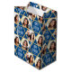 Personalized gift bags are a great way to add a personal touch to your gift-giving! This stylish design features an all-over star pattern, displaying two of your favorite photos along with the name of the recipient. The 'Happy Birthday' message can also be changed or tailored for different occasions. This versatile design is ideal for family and friends to commemorate birthdays, holidays, Hanukkah, Bar or Bat Mitzvahs, graduations, moving to a new house, and much more! It comes with either a matte or glossy finish. Colors: navy blue, white and gold color.
